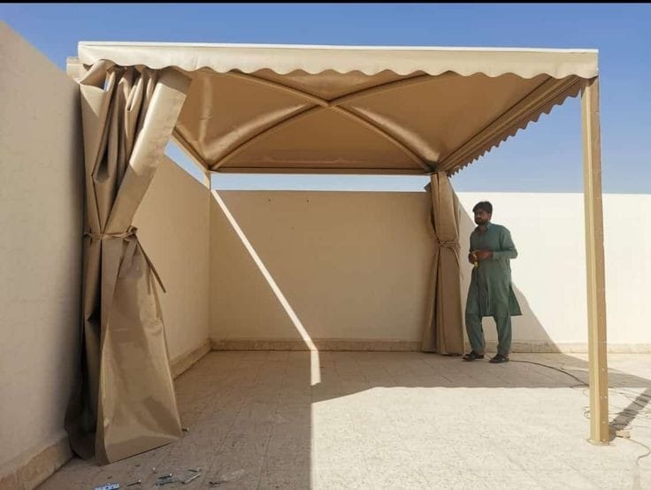 وهي مظلات مصنوعة من القماش، وتتميز بتنوع الألوان والتصاميم، وسهولة التركيب والصيانة.